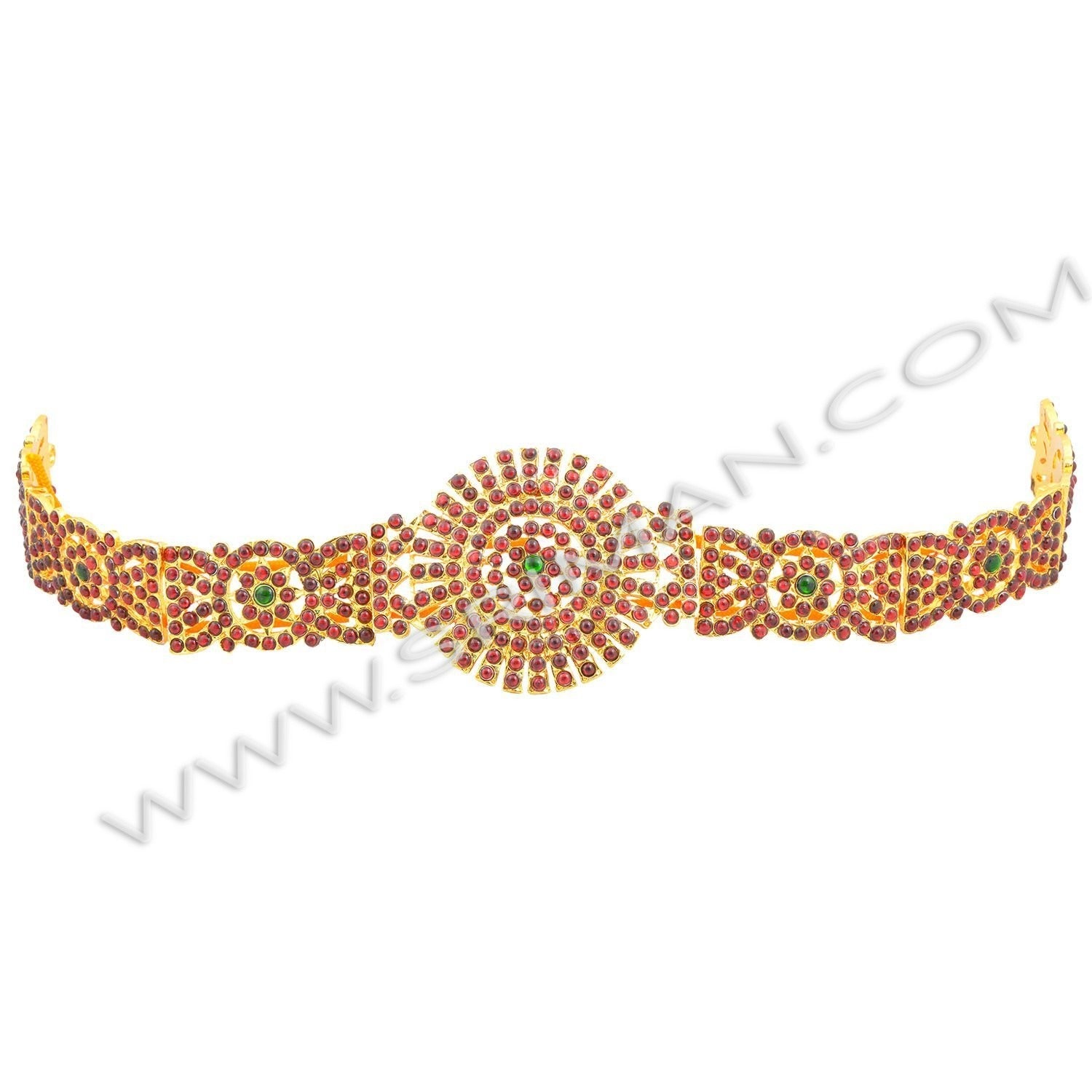 - Total 10 items along with Headset (including sun & moon), Short Necklace,Haram, Bajuband, Ragadi, Bangles, Mattil, Jumka, Belt and Nathu bullakku